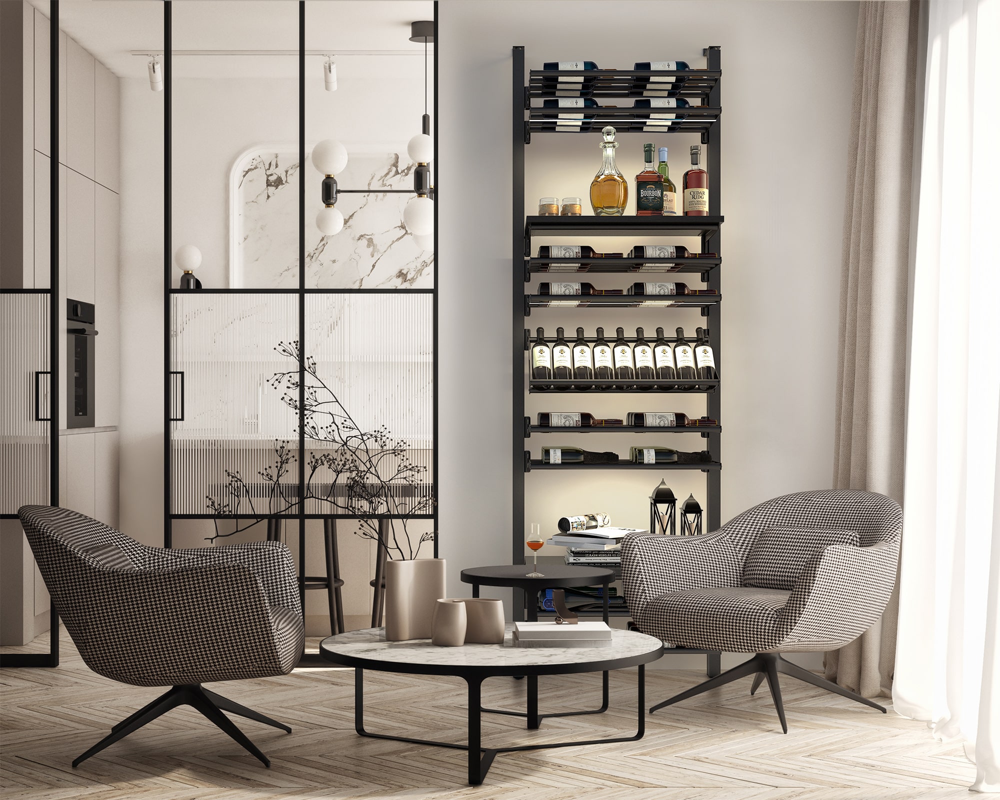 Built in aluminum, the elegance of its clean lines perfectly matches its sturdiness. Offering impressive flexibility in bottle organization and presentation, it is ideal for cellars or glassed-in wine cellars, adapting equally well to small spaces and large layouts.