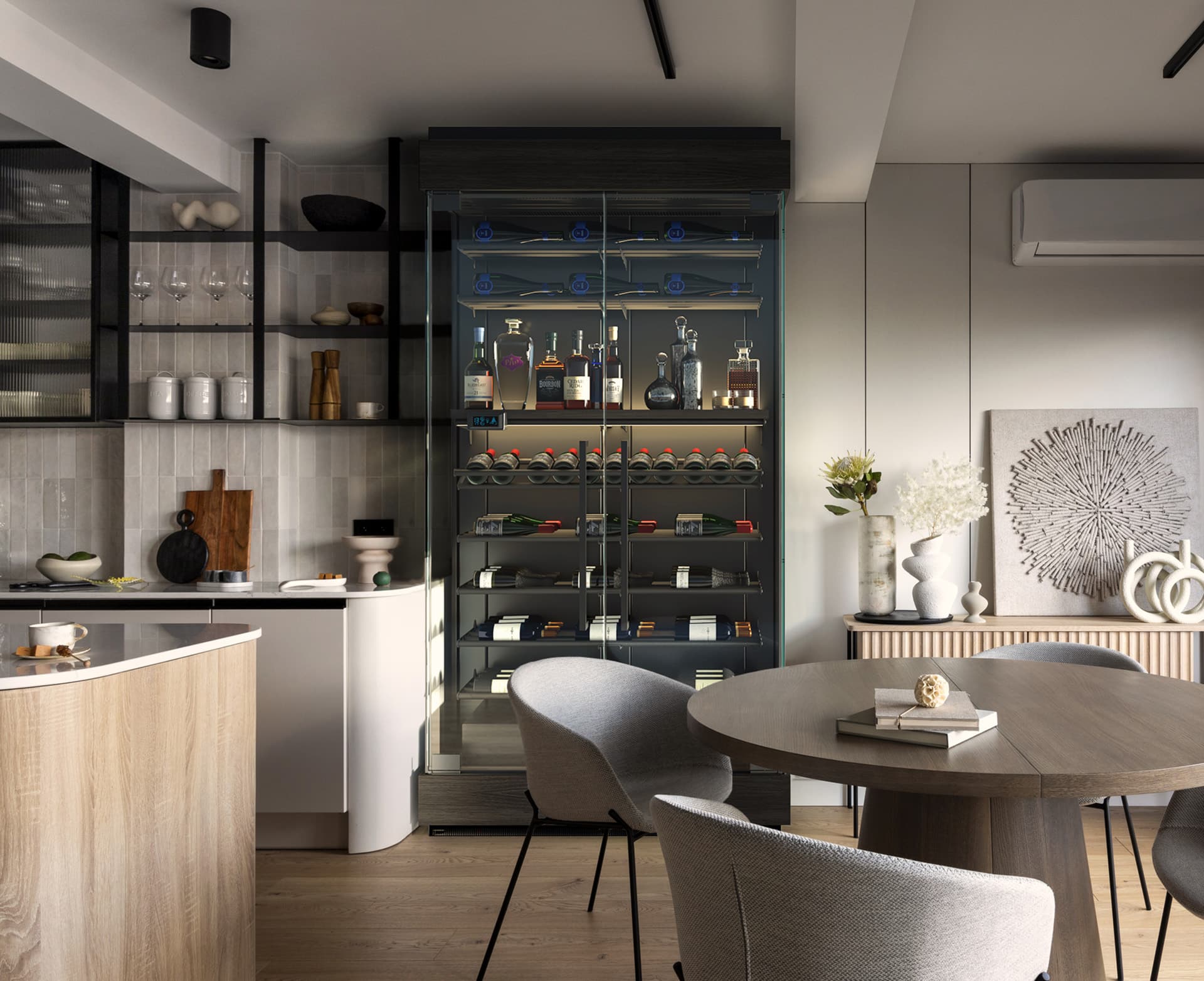 A contemporary version of the freestanding wine cabinet, the Panorama can be installed without project management or work on your building in a single day.